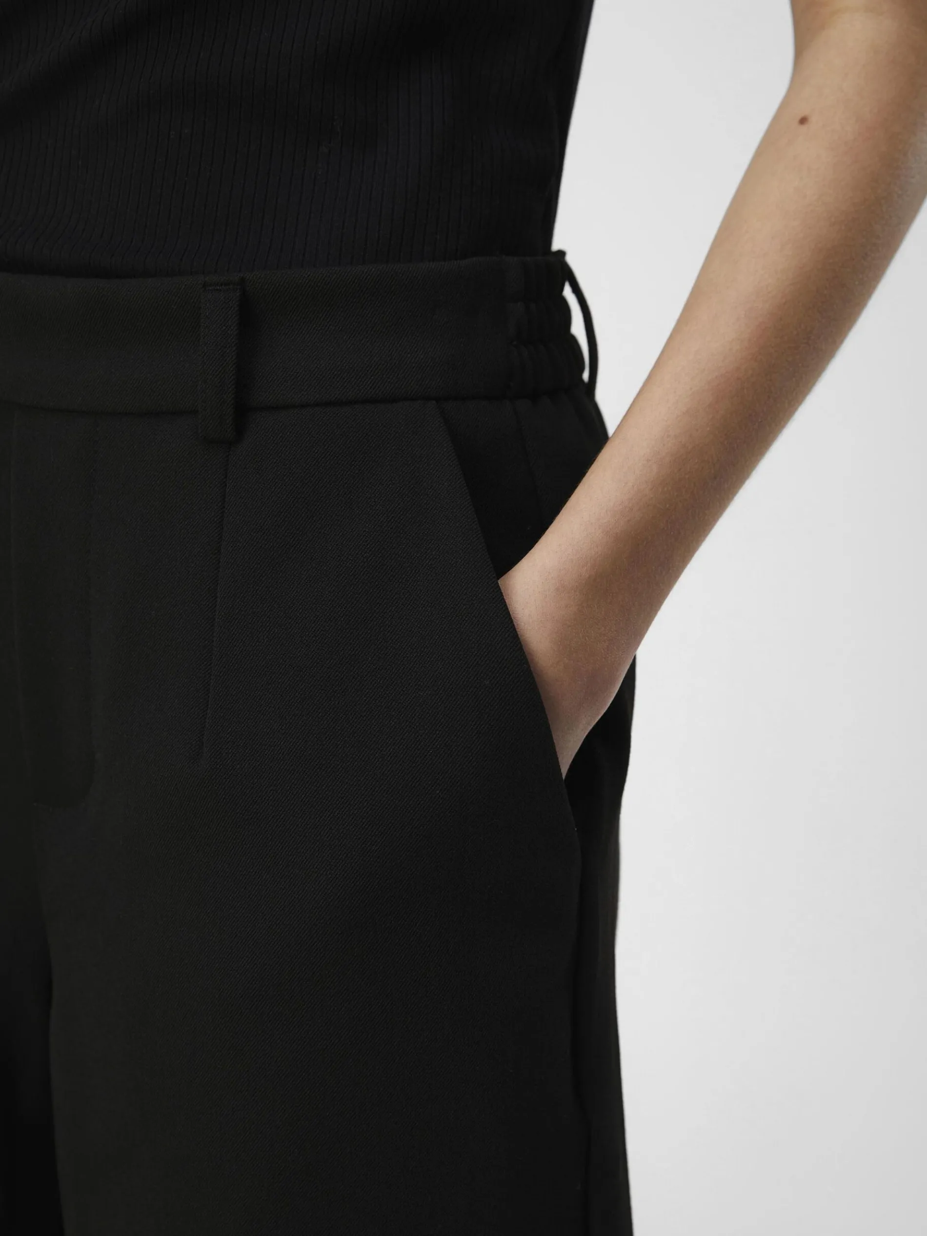 – Normale taille met elastische achterkant- Riemlussen- Decoratieve sluiting- Stikseldetail- Zakken in zijnaden- Opgestikte achterzakken- Stikseldetails op de randen- Regular fit- Gemaakt met duurzamere stoffen- Model draagt maat 36