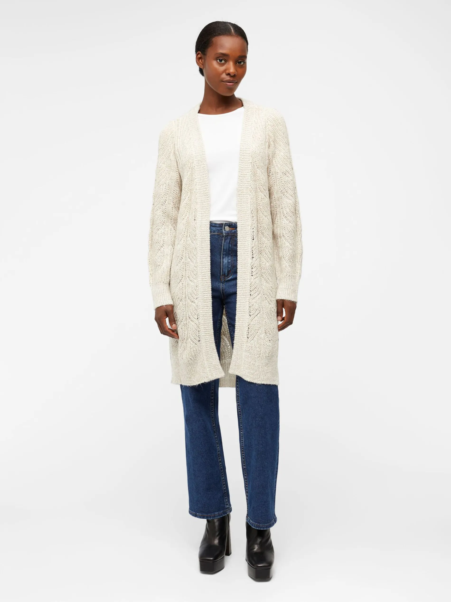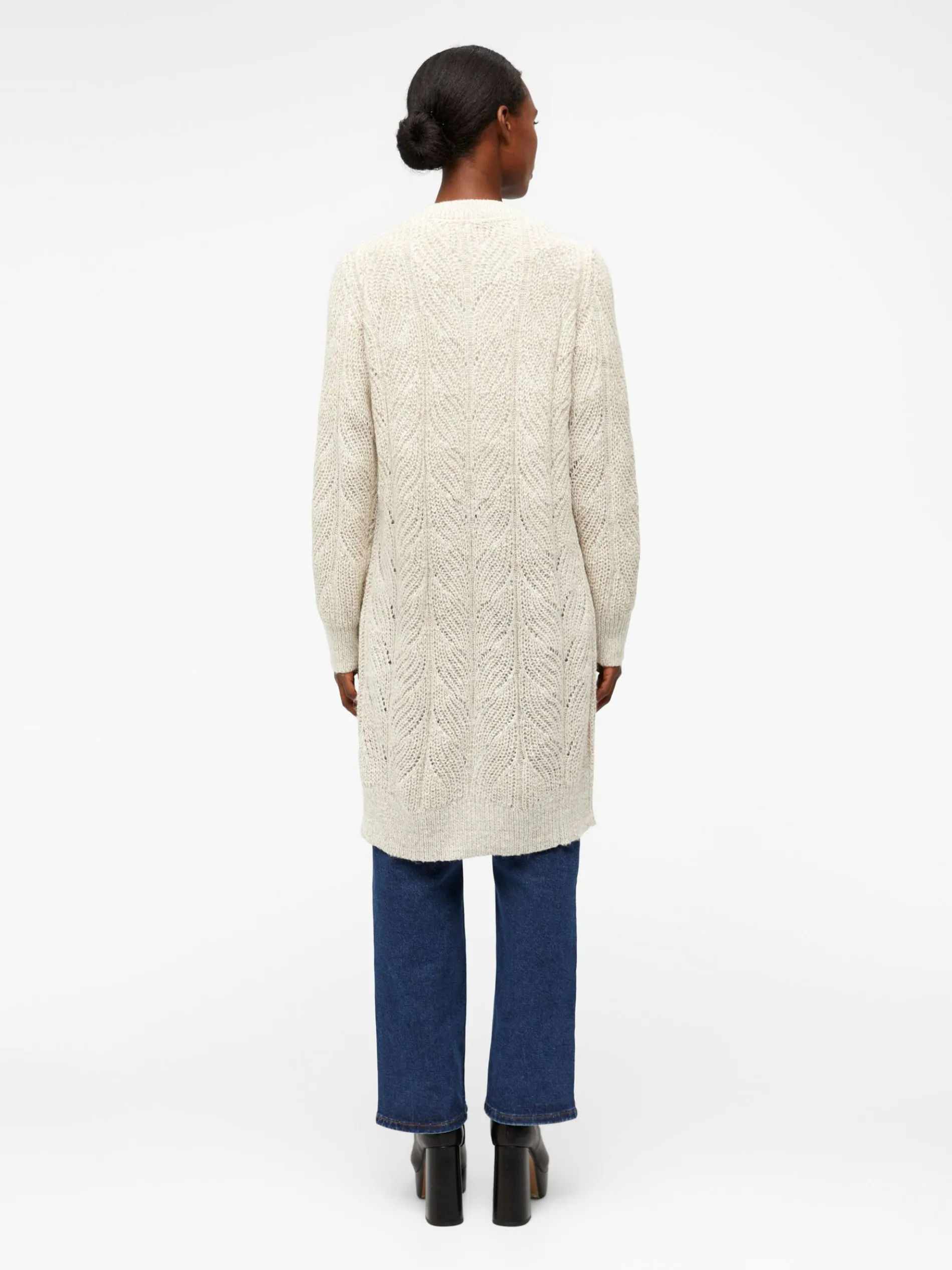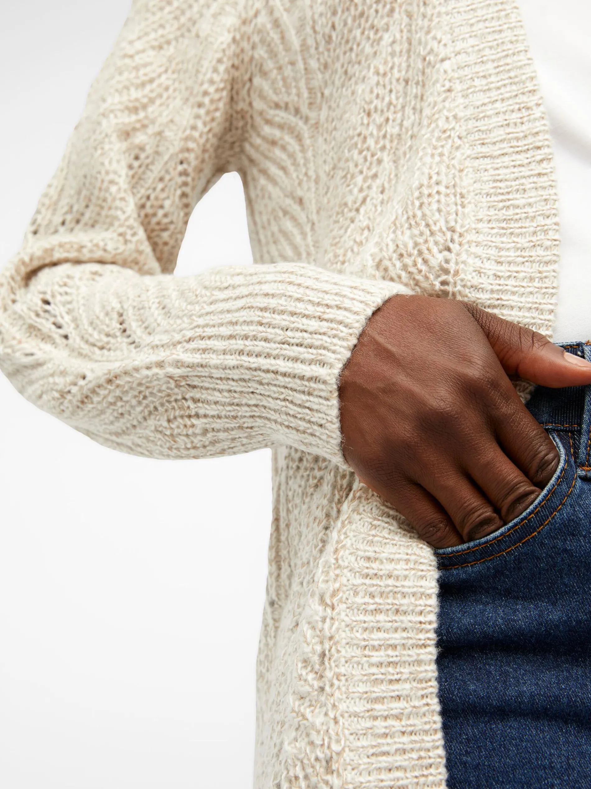 – Lang gebreid vest – Gestructureerde details – Ribboord aan de mouwen – Lengte: 88 cm in maat 38 – Mouwlengte: 64 cm in maat 38- Ons model is 178 cm lang en draagt maat 38