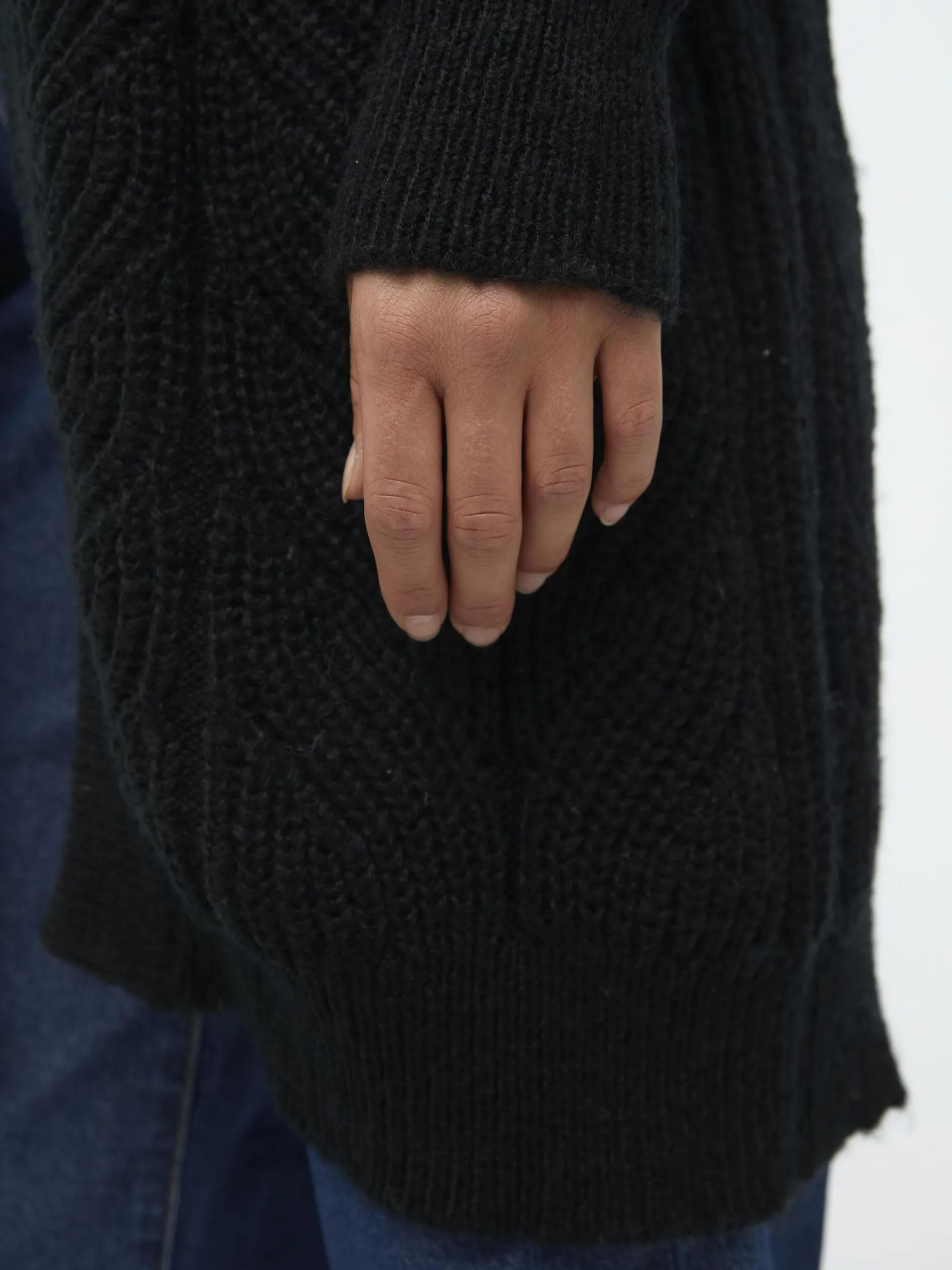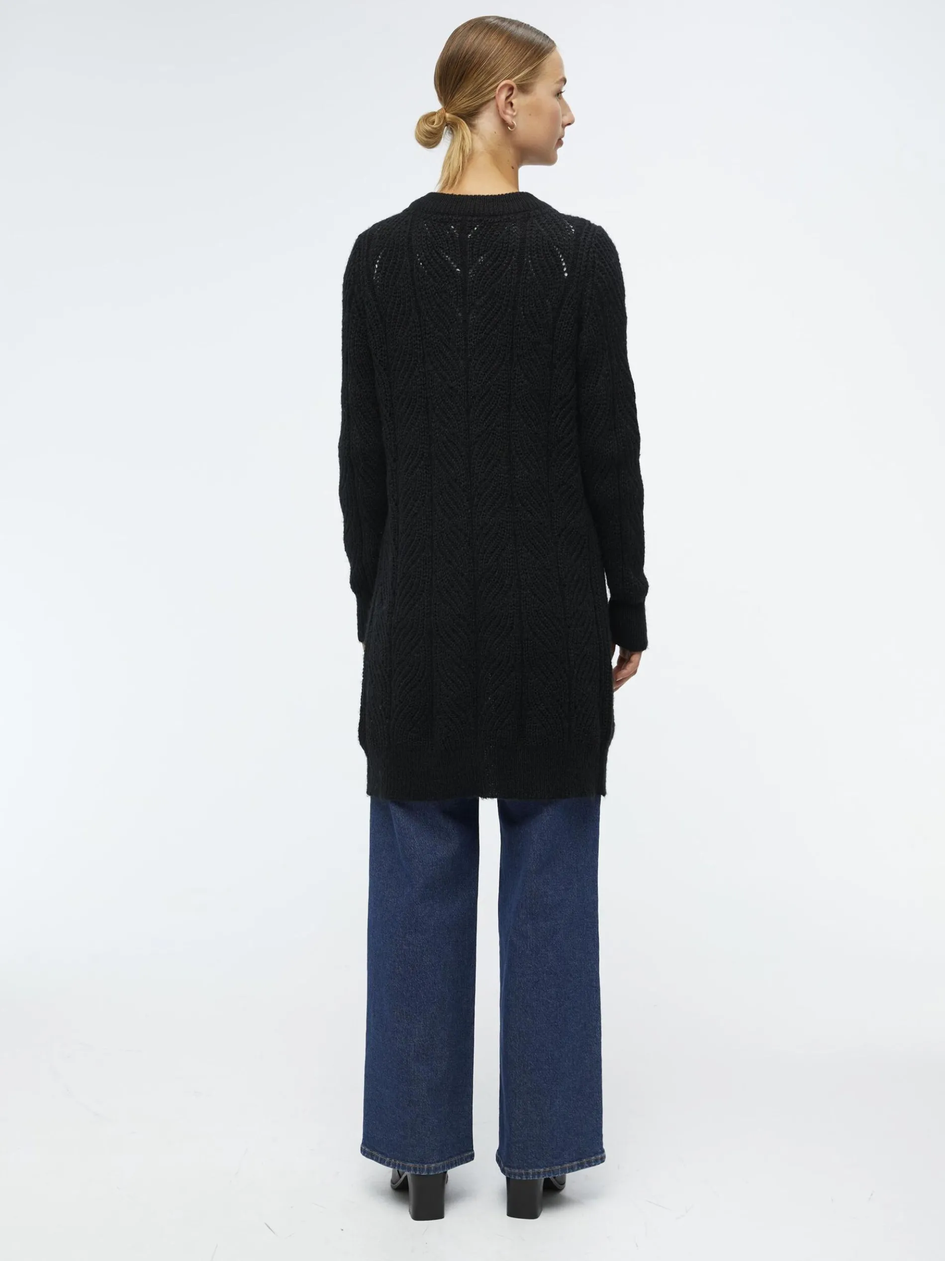 – Lang gebreid vest – Gestructureerde details – Ribboord aan de mouwen – Lengte: 88 cm in maat 38 – Mouwlengte: 64 cm in maat 38- Ons model is 178 cm lang en draagt maat 38