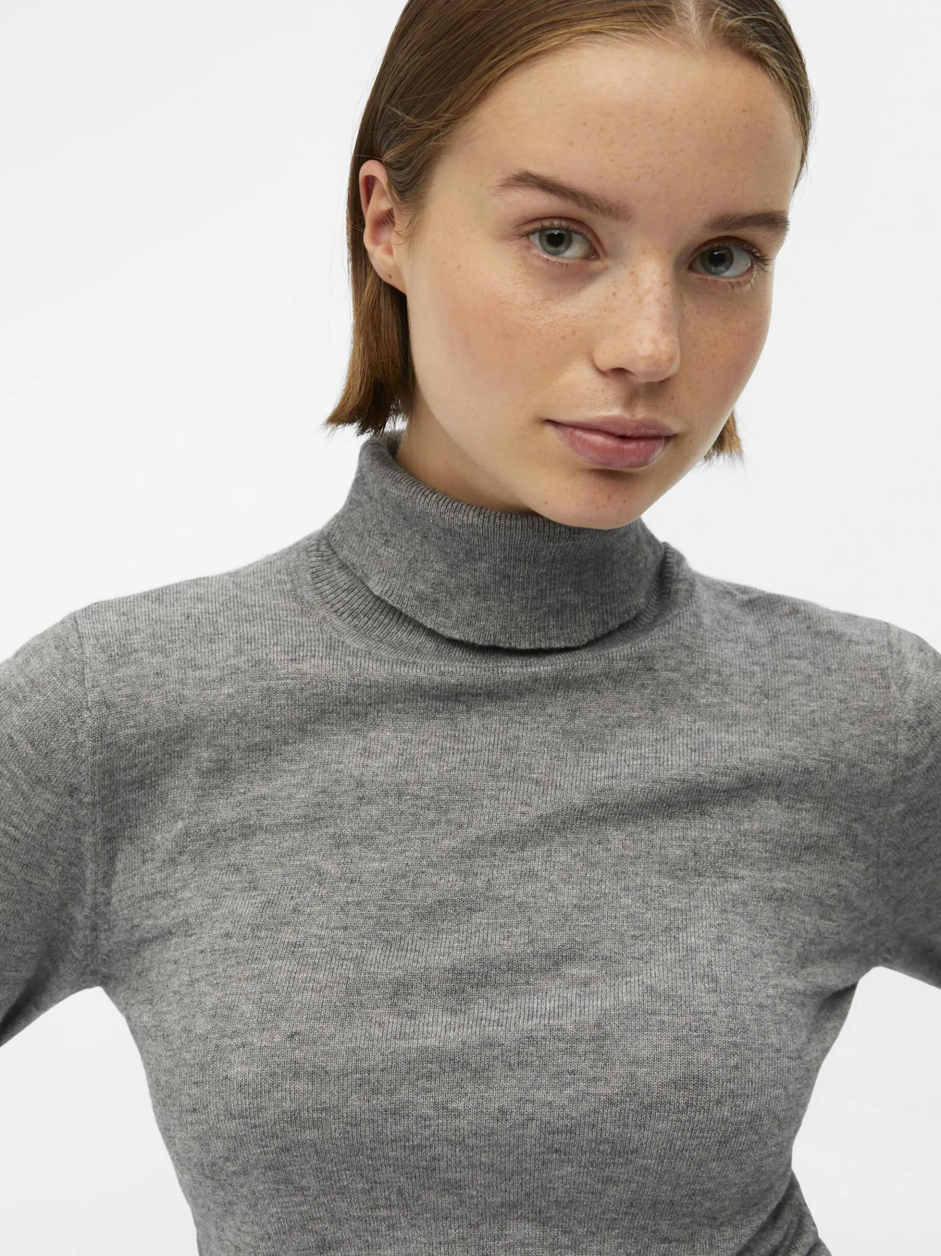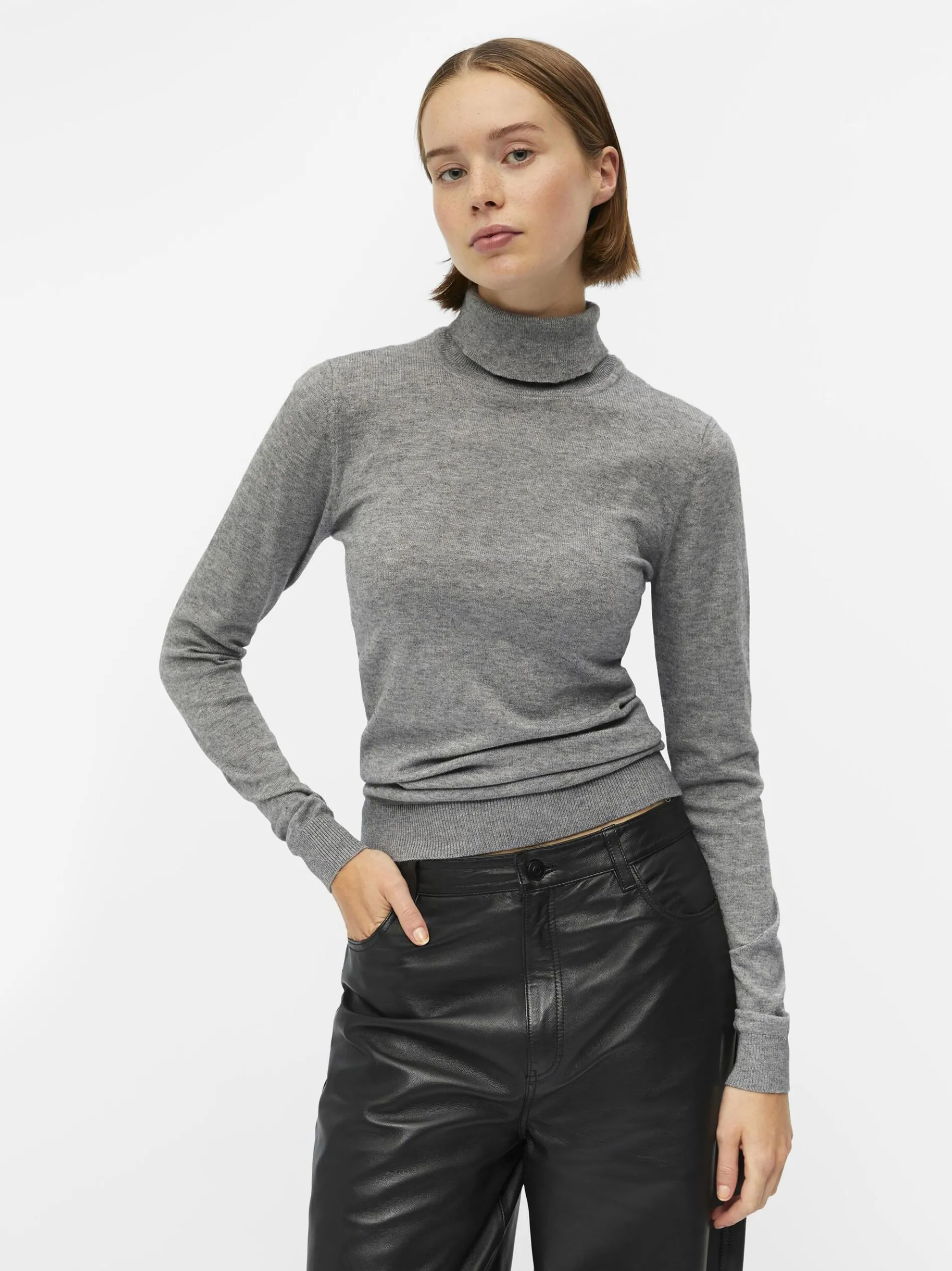 – Gebreide trui met lange mouwen- Rolkraag- Lichte stretchstof- Ribranden- Lengte: 63 cm in maat 38 – Mouwlengte:¬ 64 cm in maat 38- Ons model is 178 cm lang en draagt maat 38