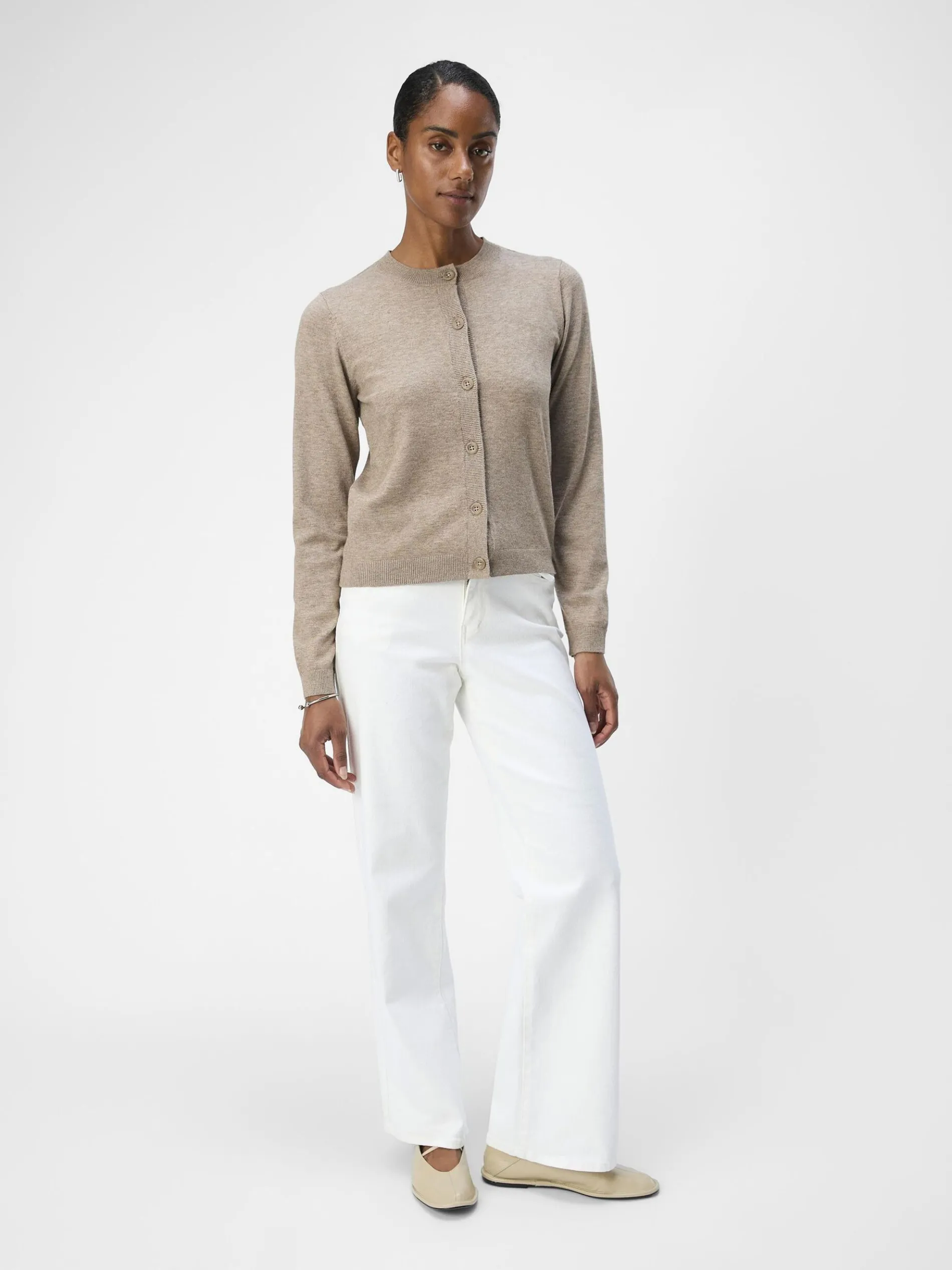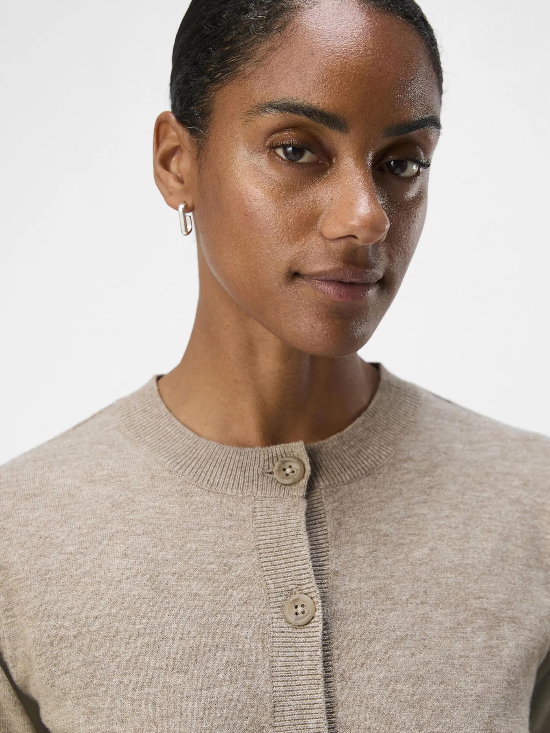 – Korte gemêleerde cardigan- Ronde hals- Lange mouwen- Knoopsluiting aan de voorkant- Geribbelde boorden- Regular fit- Gemaakt van een milieuvriendelijkere stof