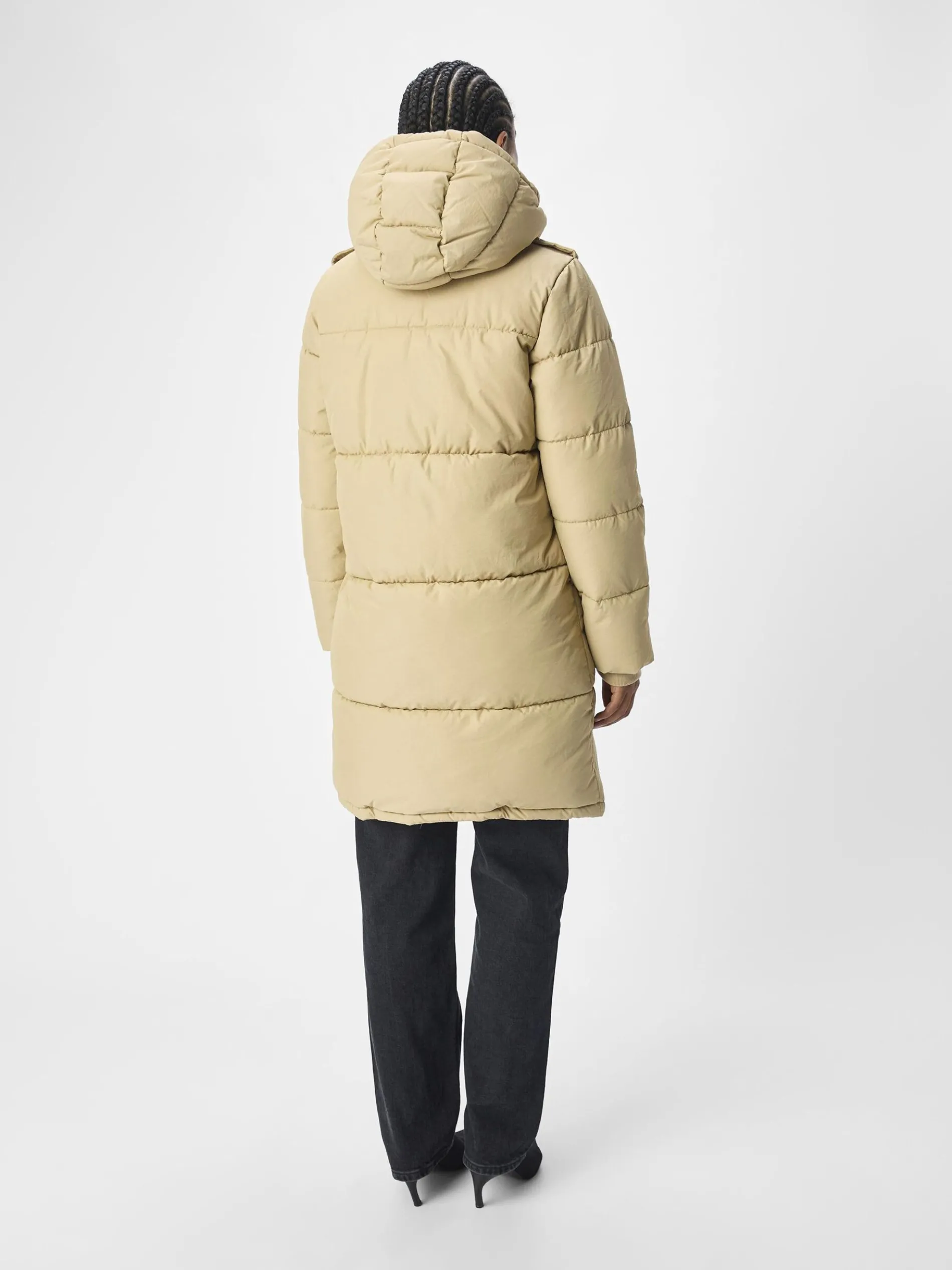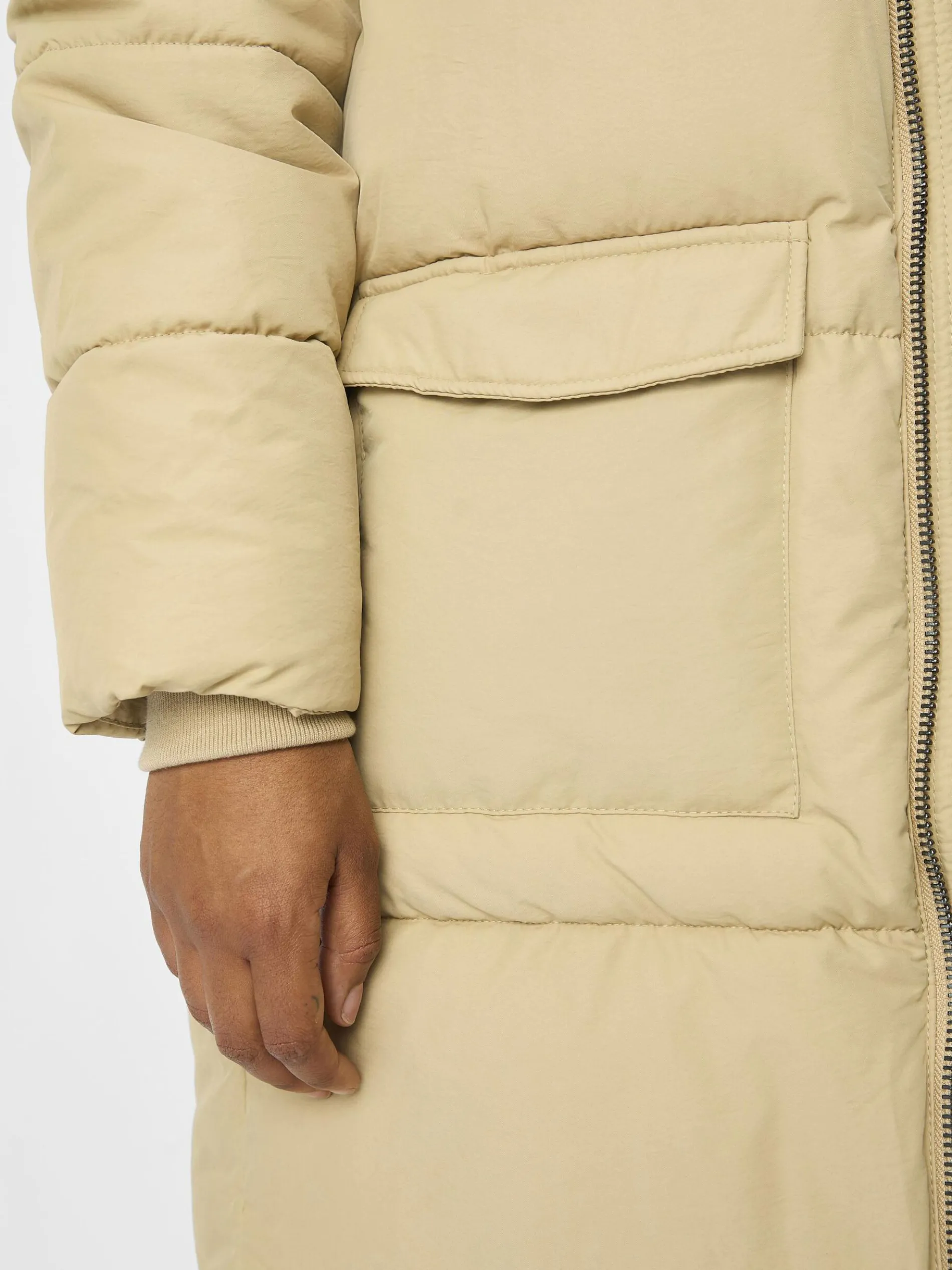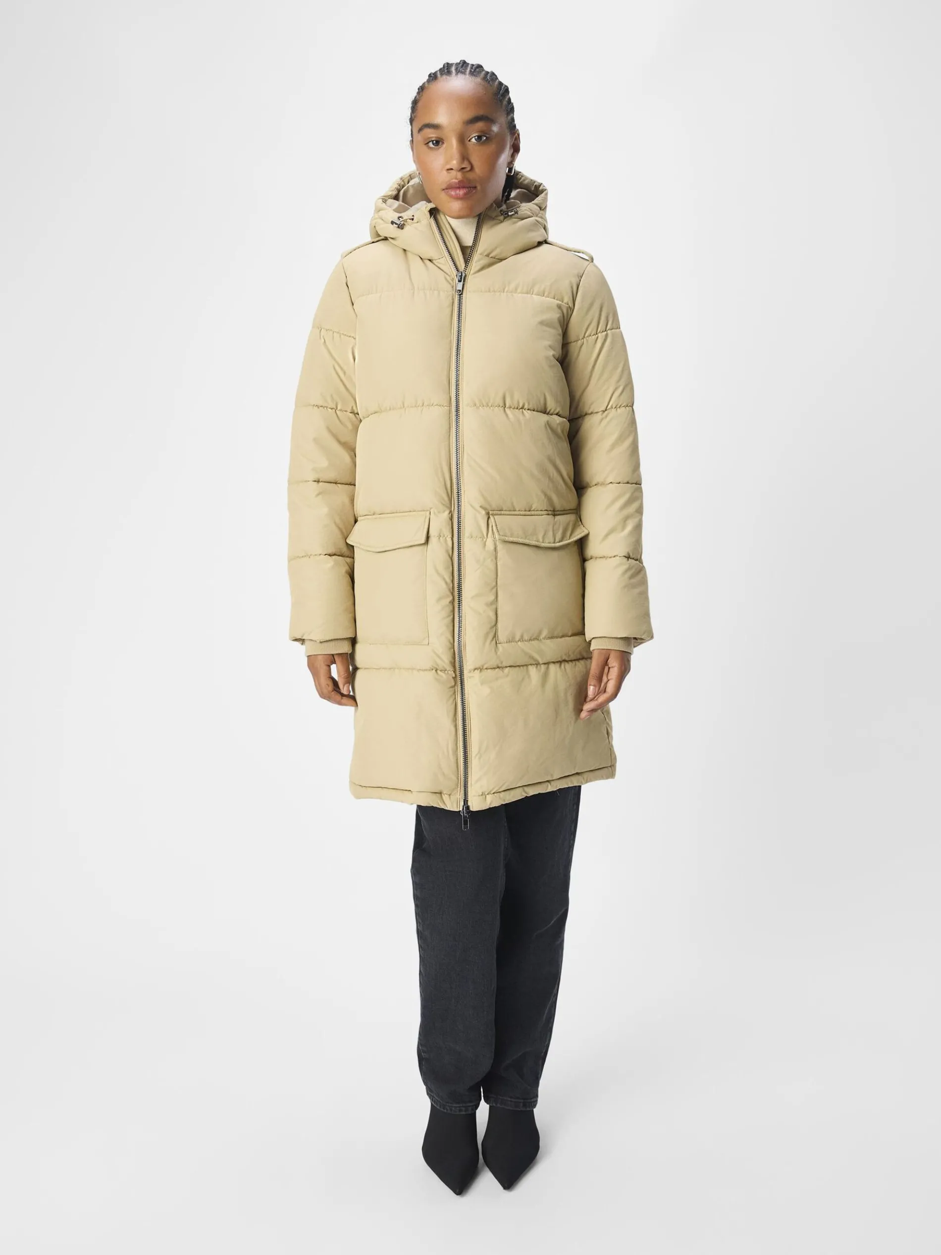 – Longline gewatteerde jas- Capuchon met trekkoordjes- Tweeweg ritssluiting- Lange mouwen- Twee opgestikte zakken met klep aan de voorkant- Model draagt maat 38- Dit model is 178 cm lang- Gemaakt met duurzamere stoffen