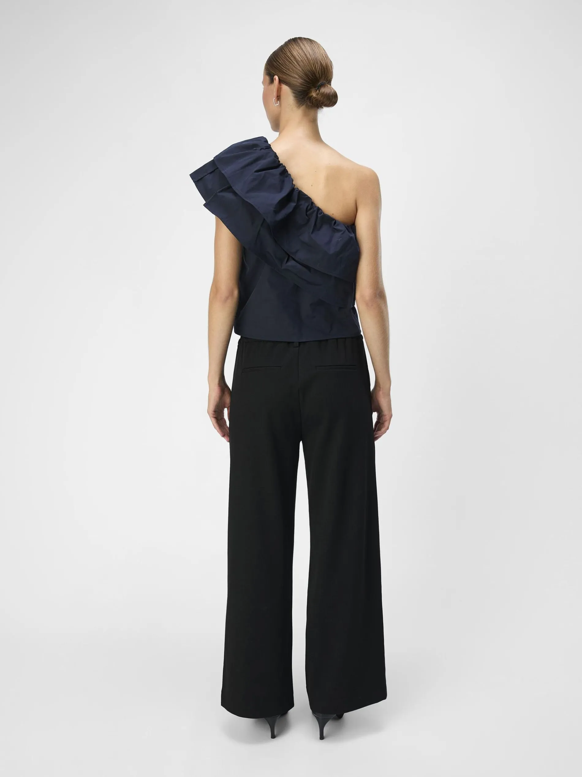 – One-shoulder top met ruches- Elastische hals- Laagjes- Slim fit