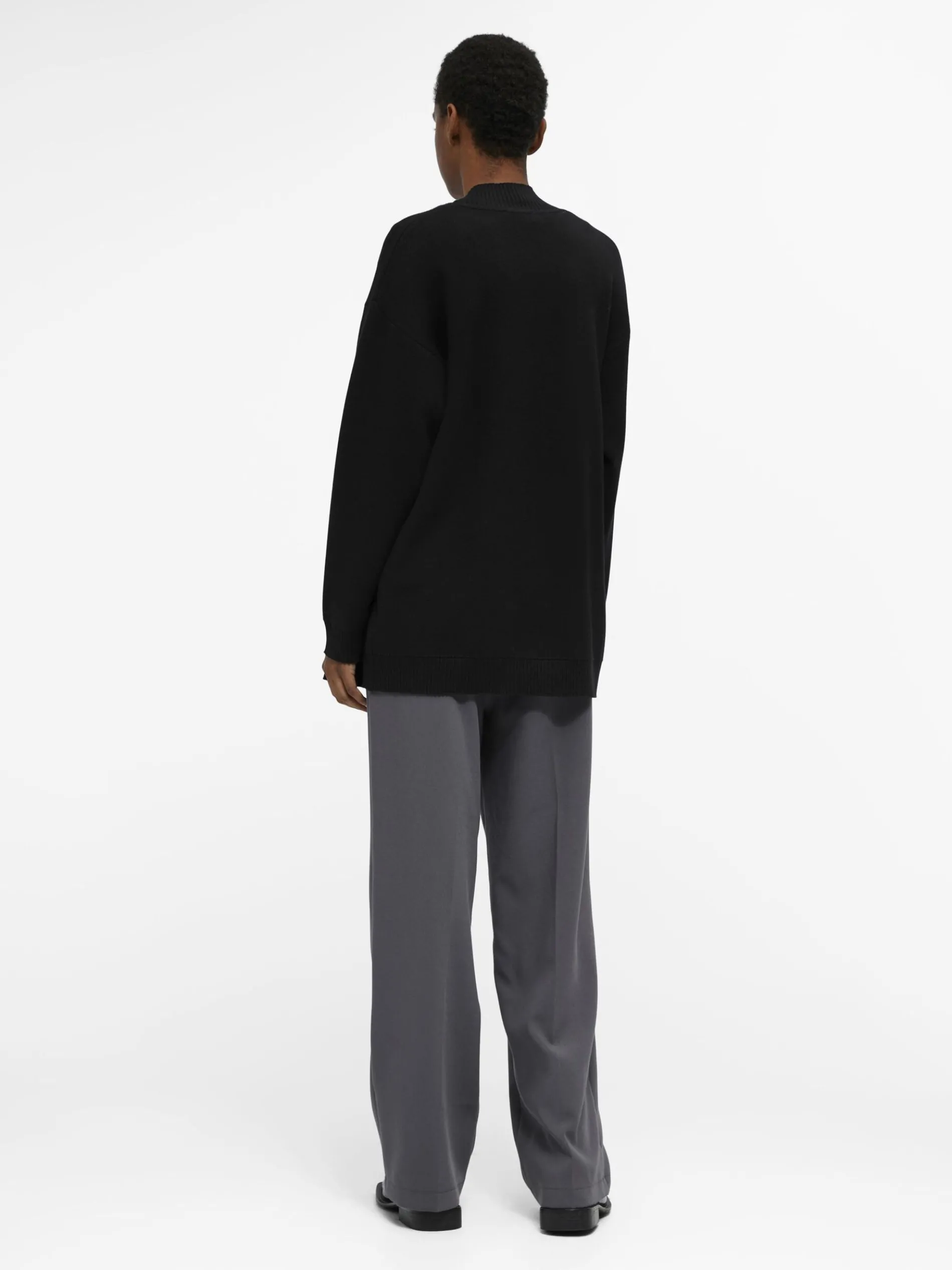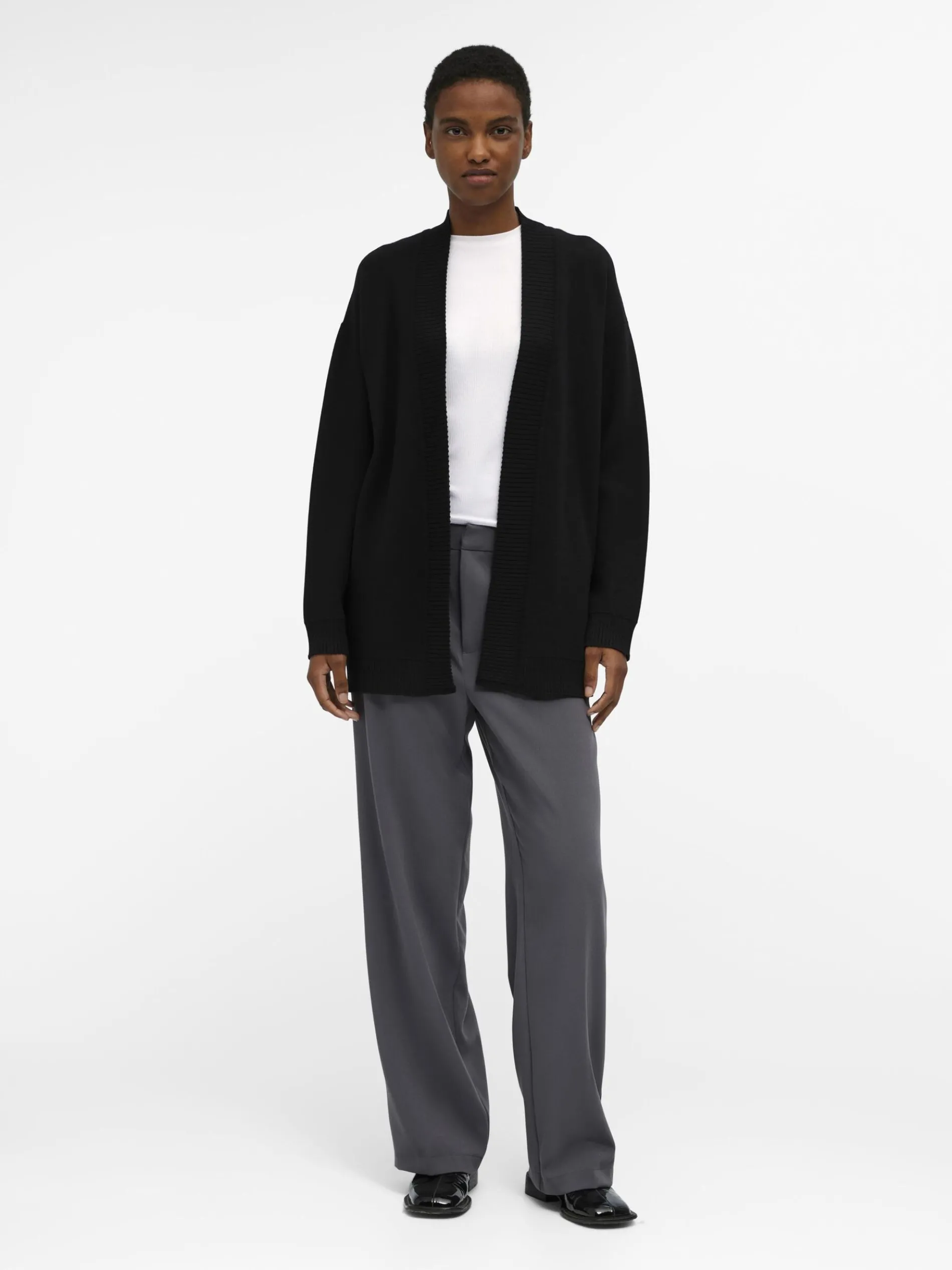 – Gebreid vest met open voorkant- Geribbelde boorden- Lange mouwen met verlaagde schouders- Relaxed fit- Model draagt maat 36- Gemaakt met duurzamere stoffen