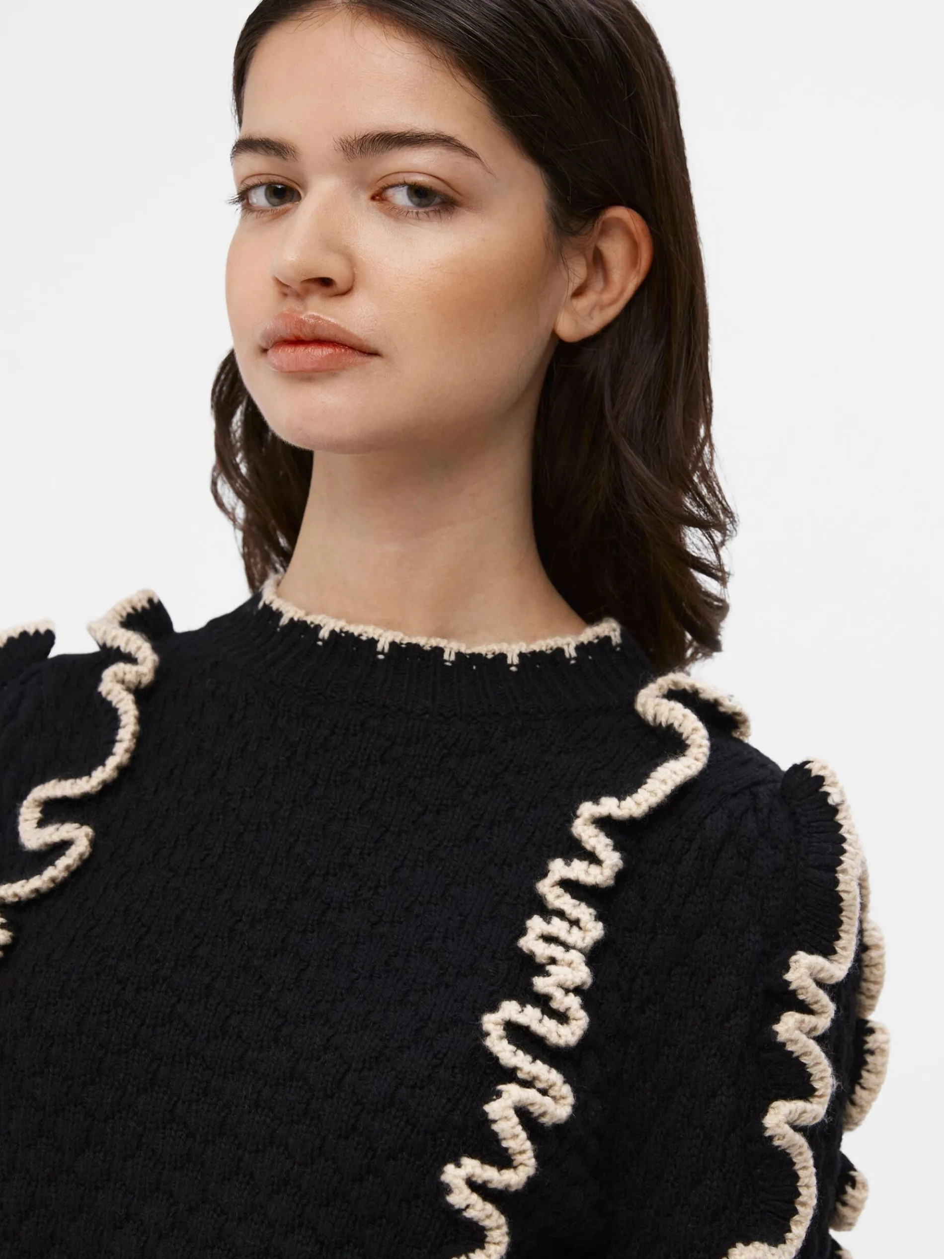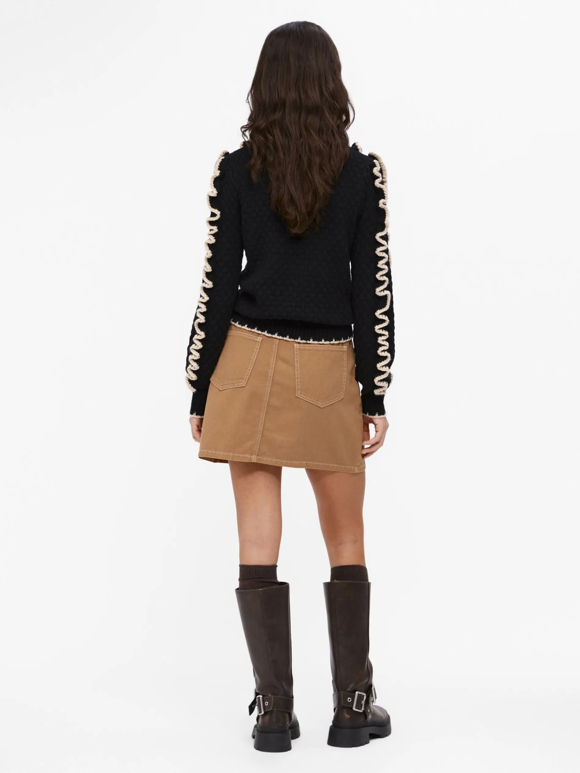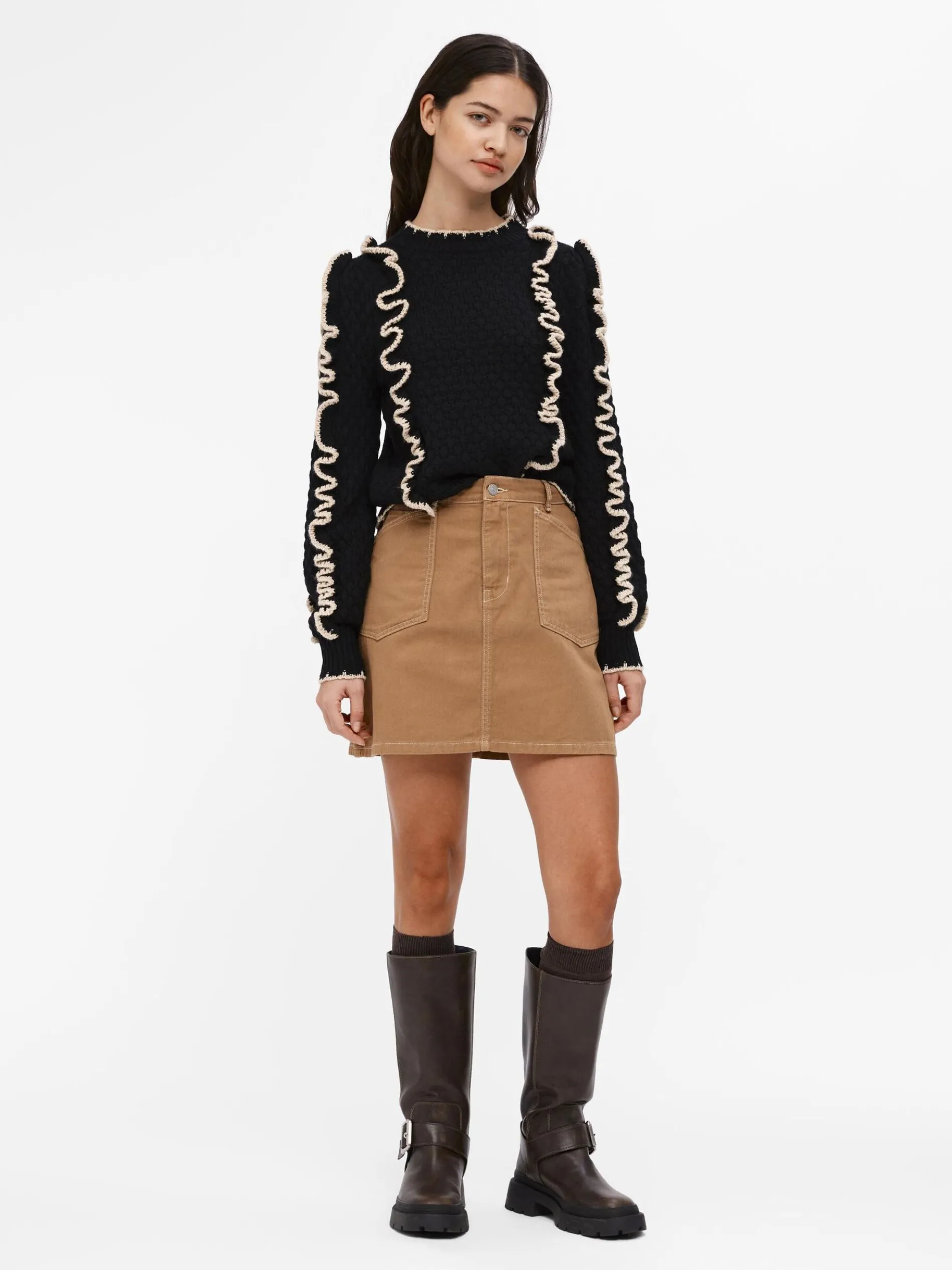 – Gebreide trui met contrasterend franjedetail- Ronde hals- Lange mouwen met verlengde manchetten- Geribde boorden- Regular fit