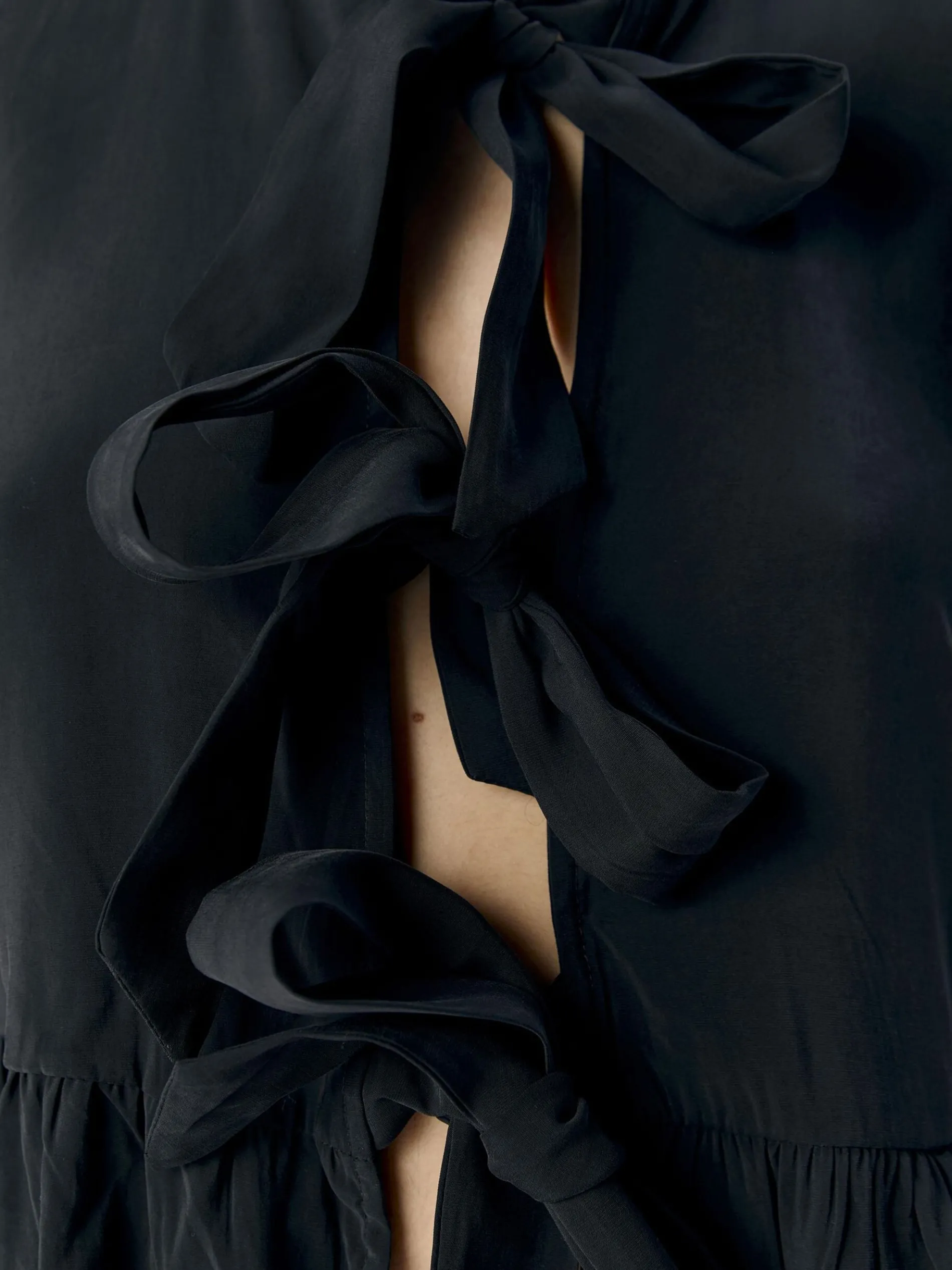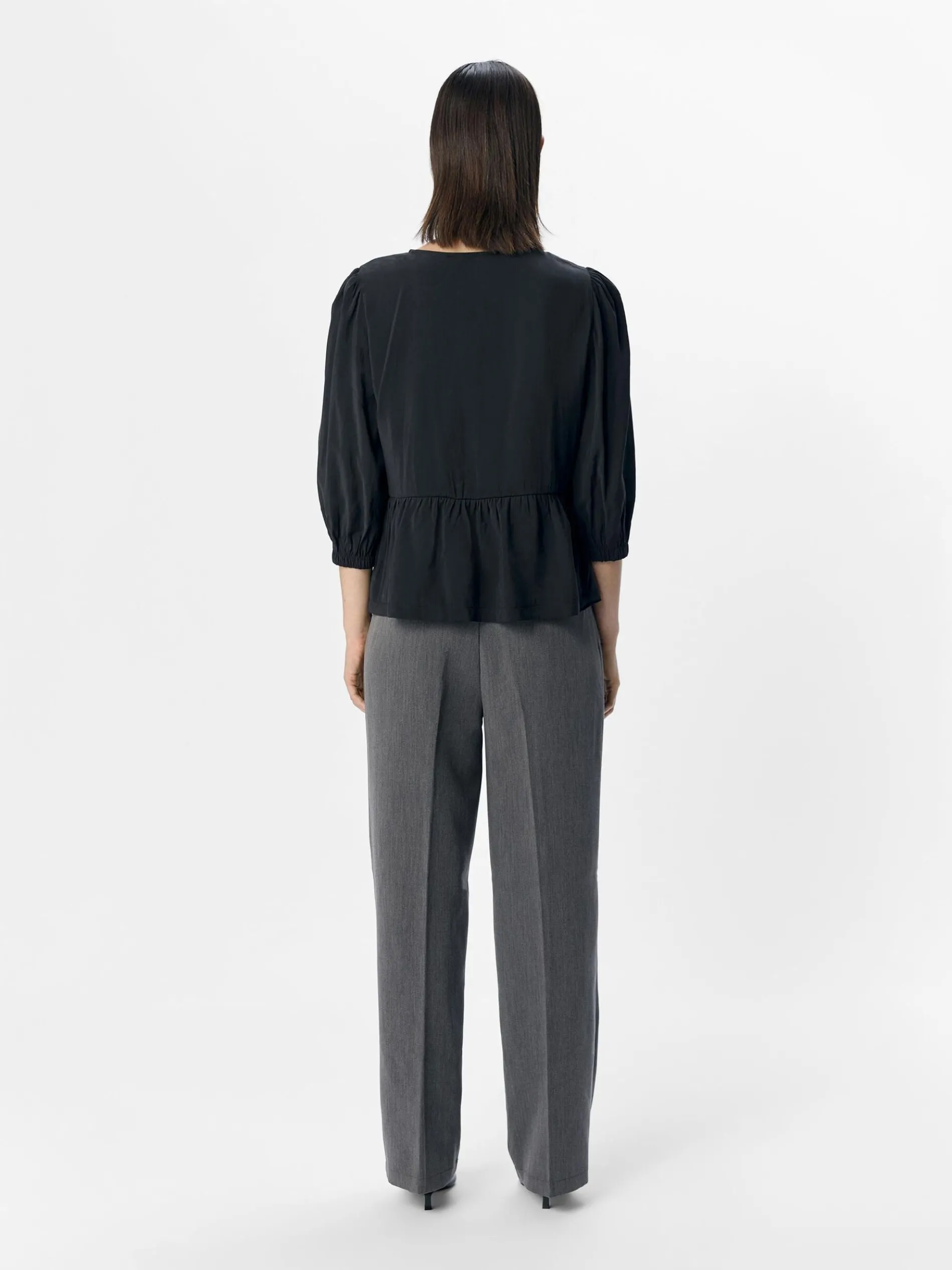 – Top met striksluiting aan de voorkant- Ronde hals- 3/4-Ballonmouwen- Peplum zoom- Loose fit