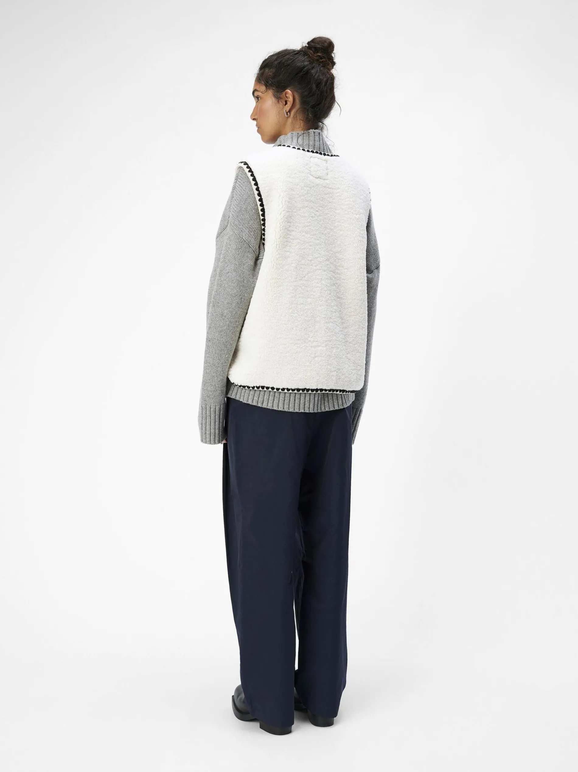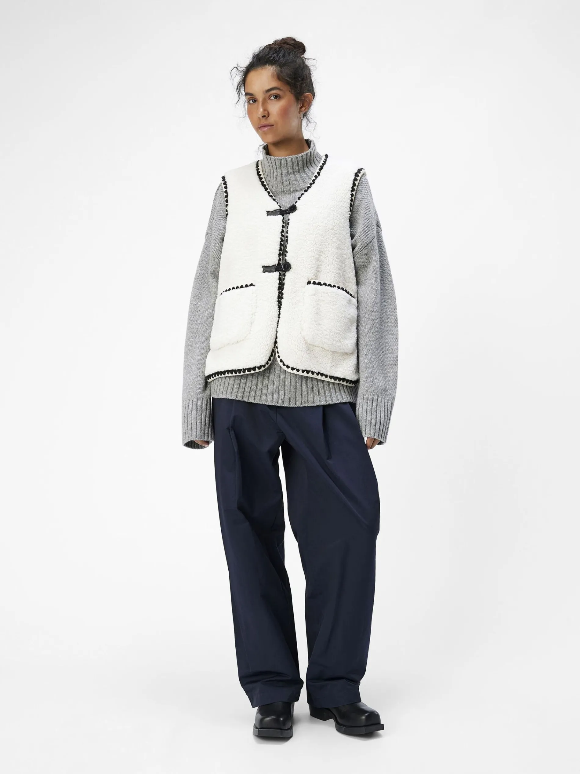 – Teddy bodywarmer- V-hals- Knoopsluiting met 2 knopen- Opgestikte voorzakken- Contrasterende randen- Regular fit