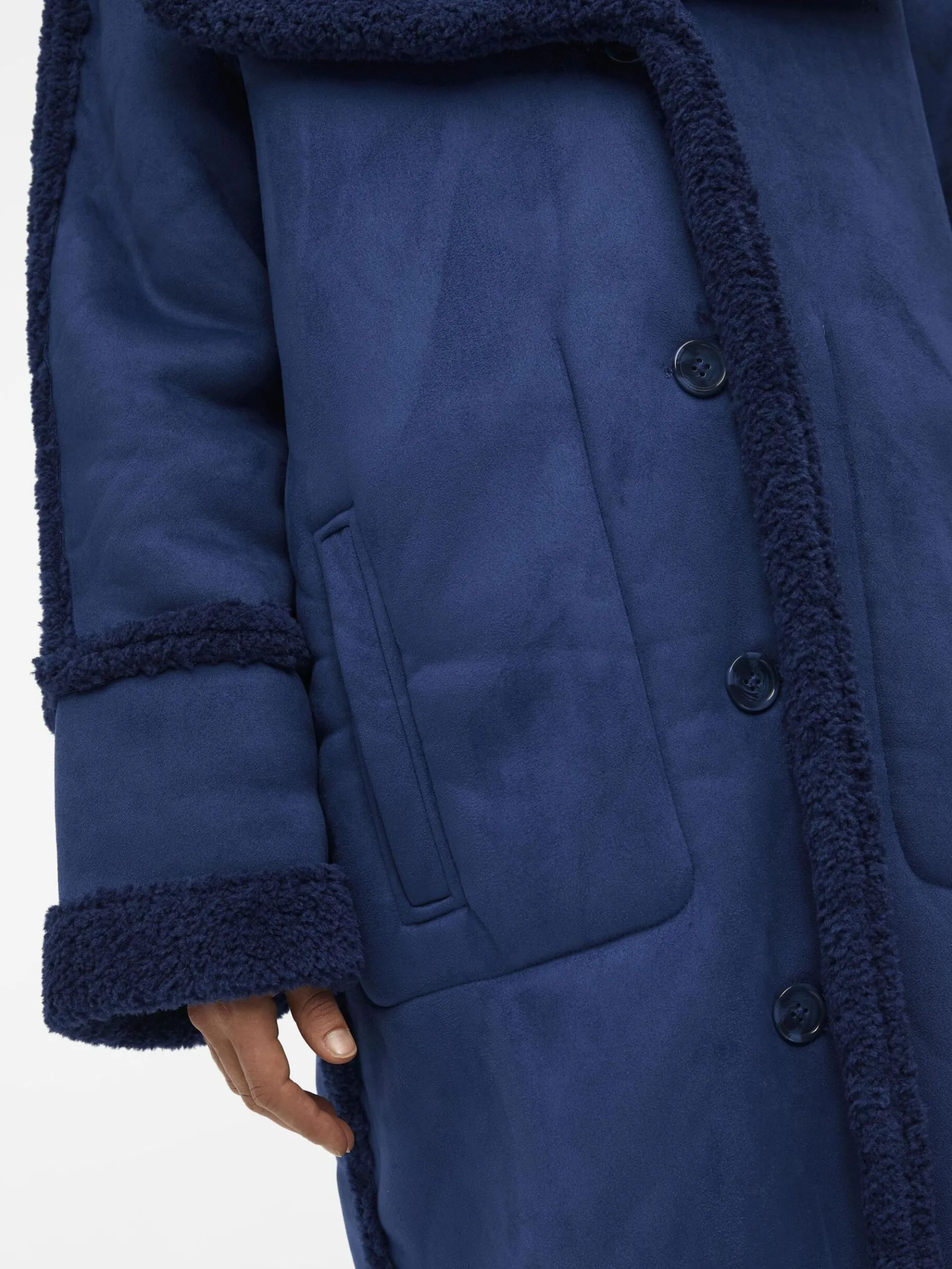 – Imitatiesuède jas met teddyvoering- Gespreide kraag- Lange mouwen- Knoopsluiting aan de voorkant- Met voorzakken- Longline pasvorm