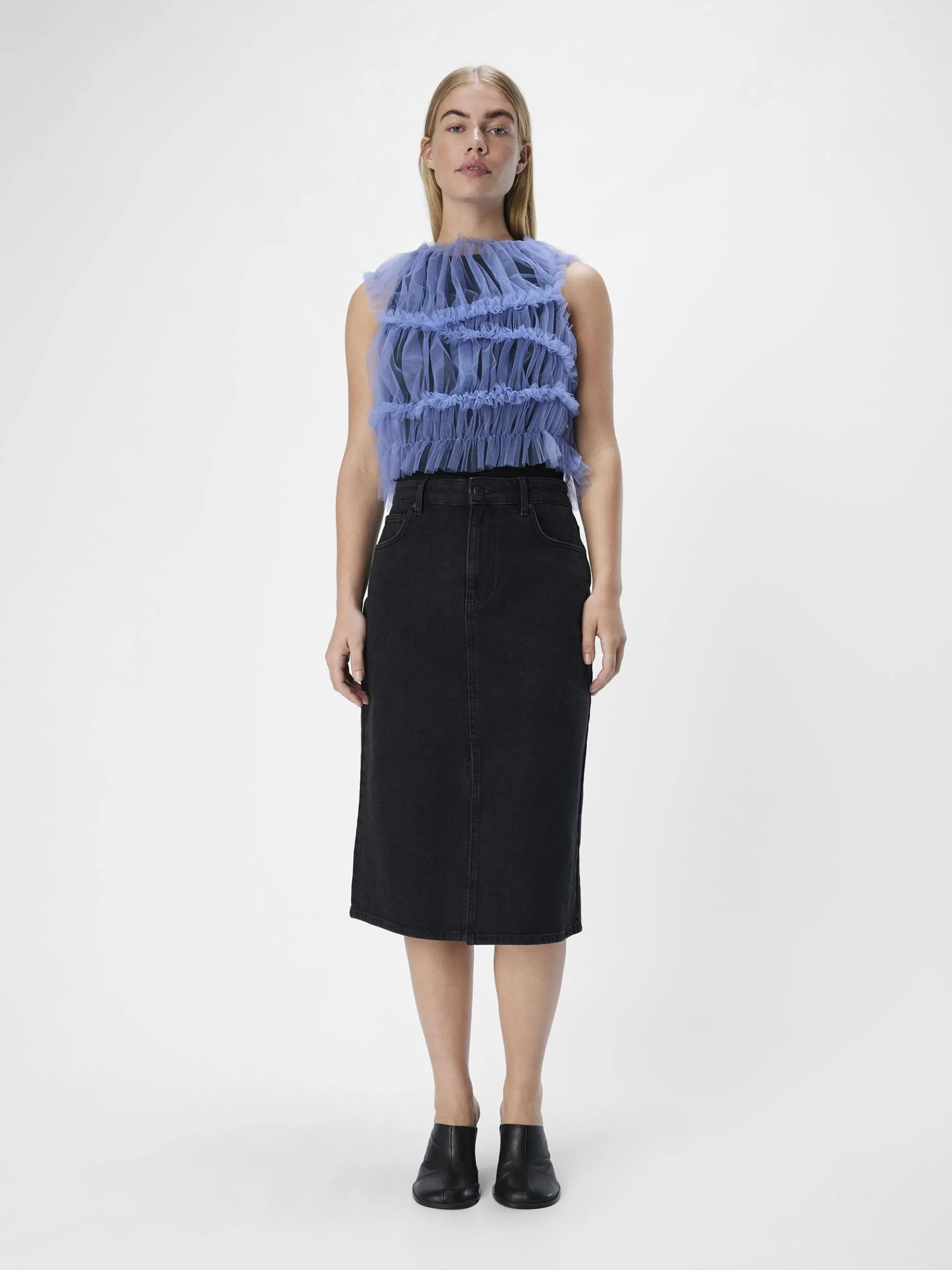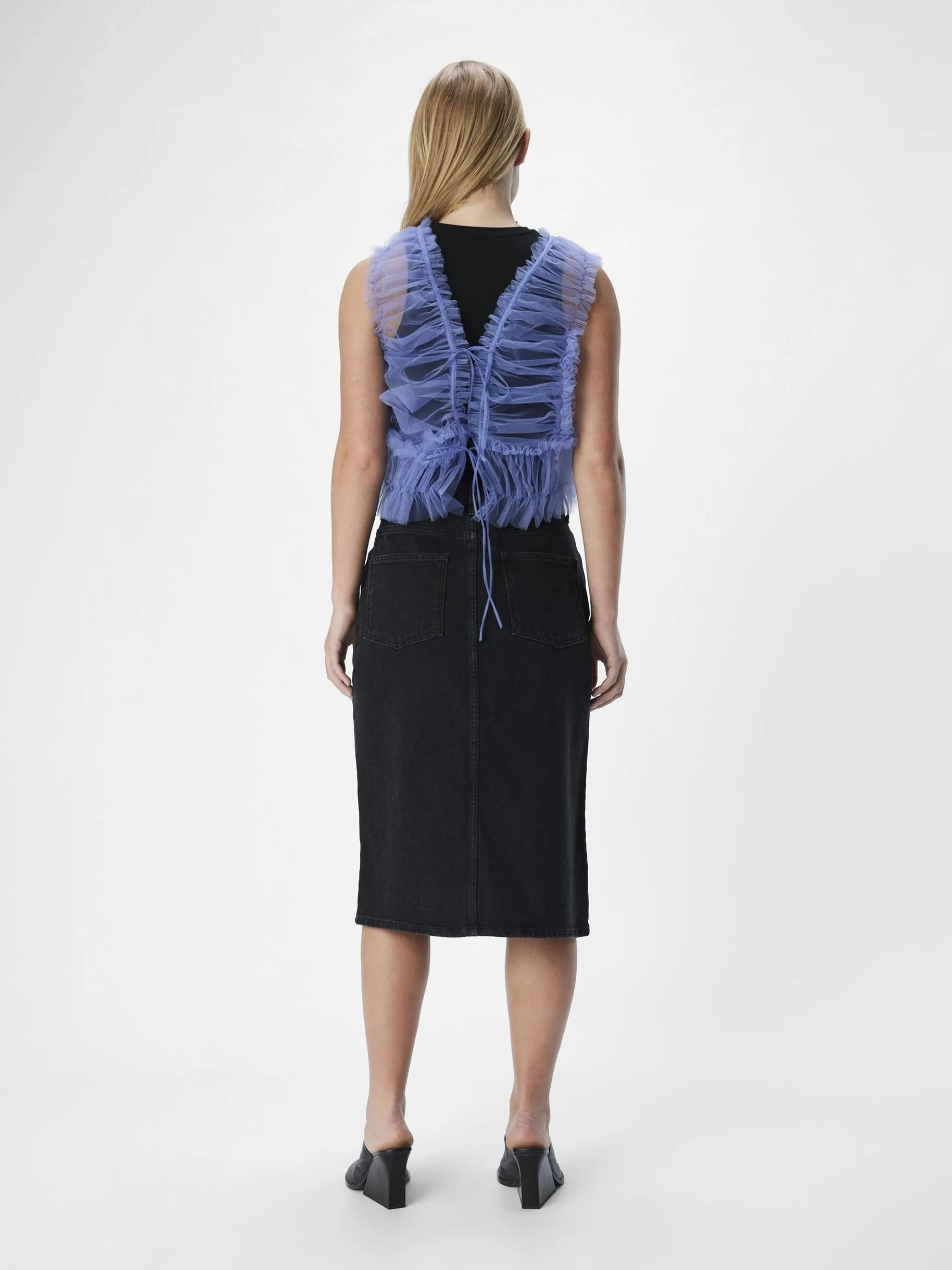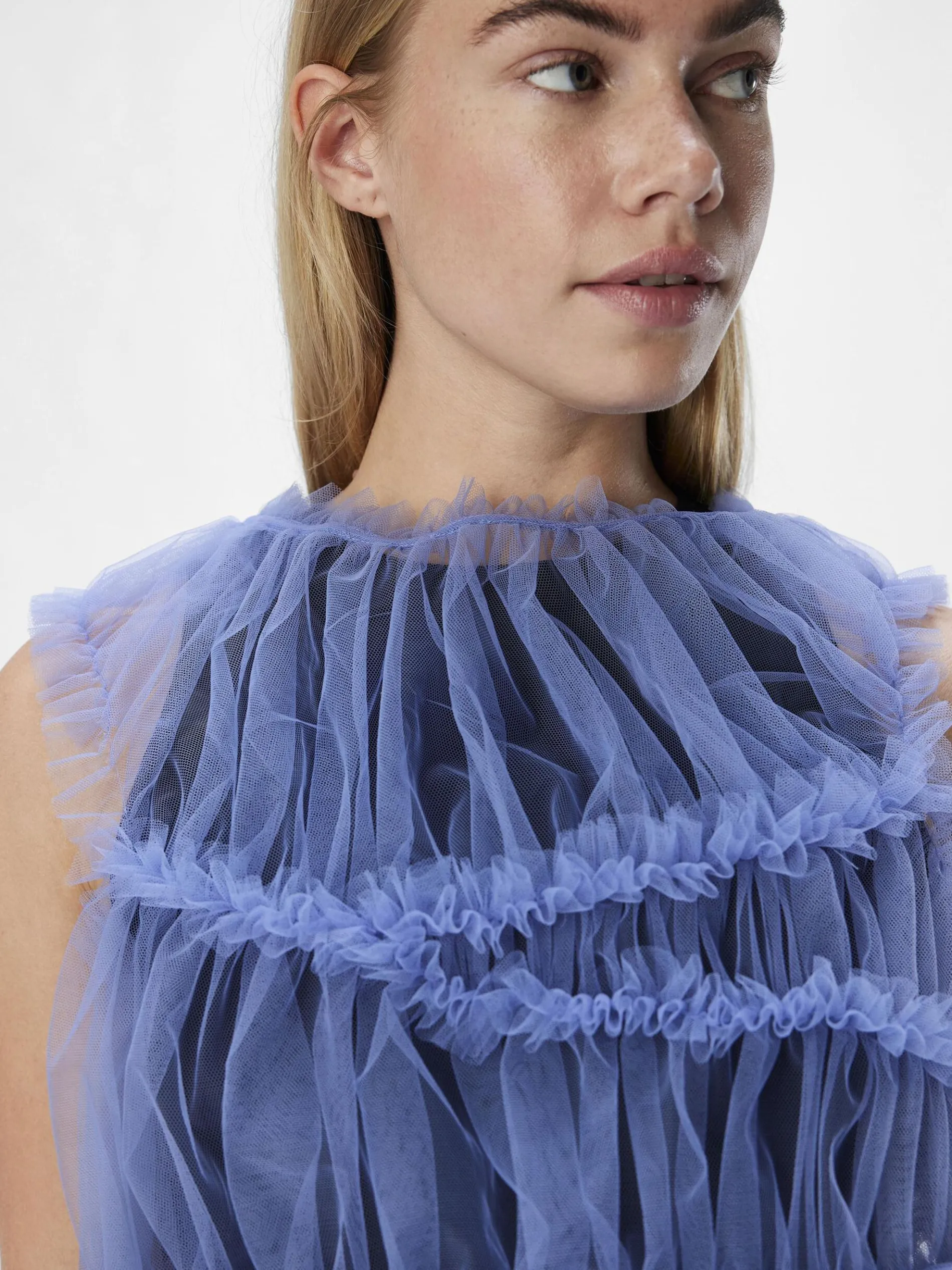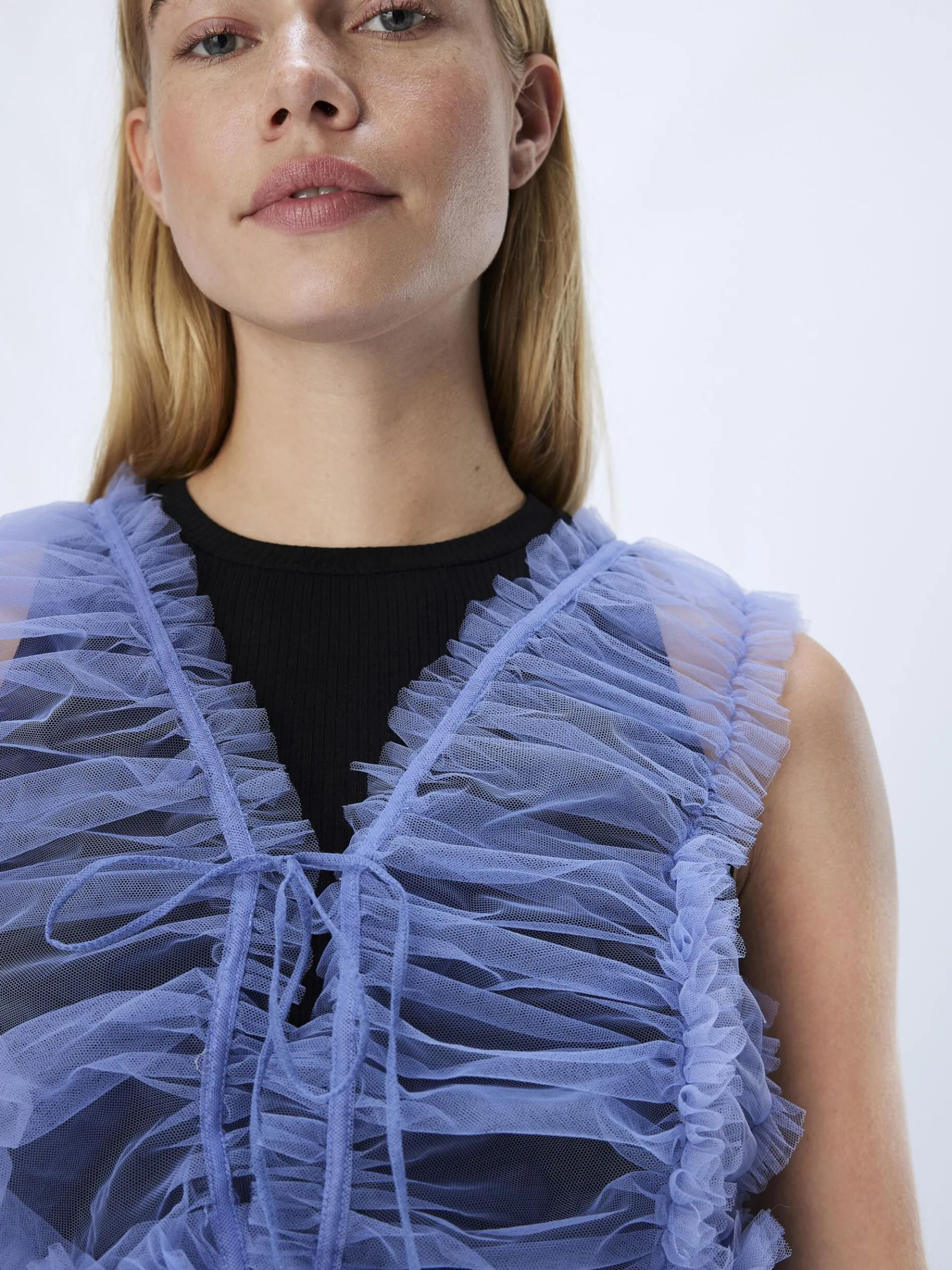 – Mouwloze top met tulle- V-hals- Striksluiting aan de voorkant- Allover geplooid effect- Ruches op de randen- Regular fit