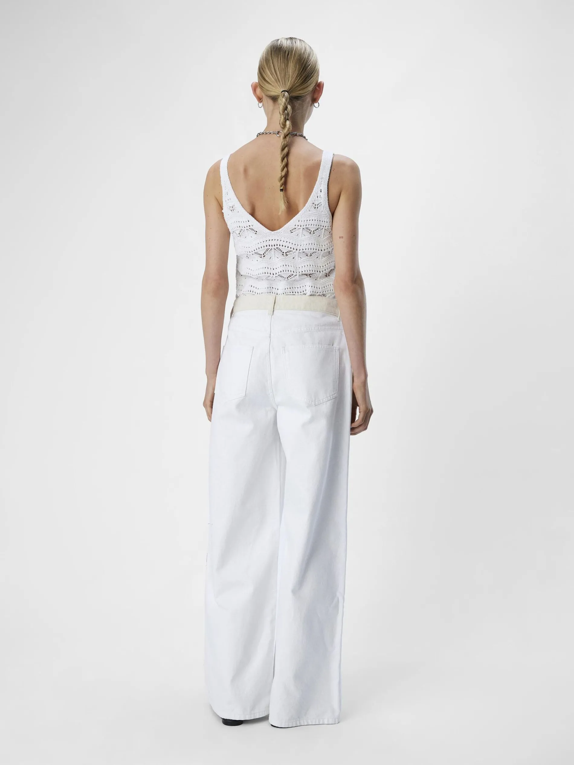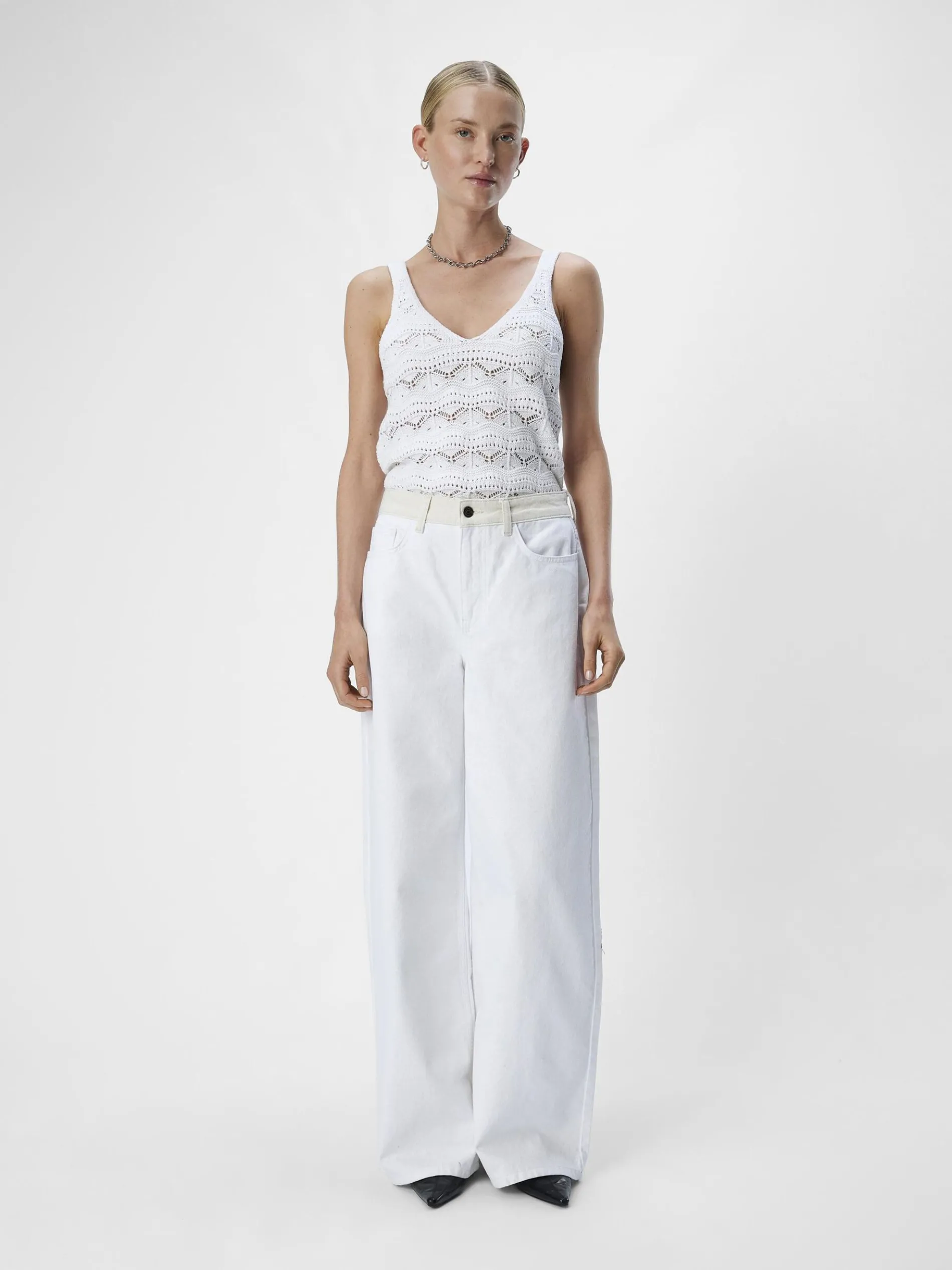 – Tweekleurige jeans met wijde pijpen- Mid-waist met riemlussen- 5-pocket design- Contrasterende randen- Rits- en knoopsluiting