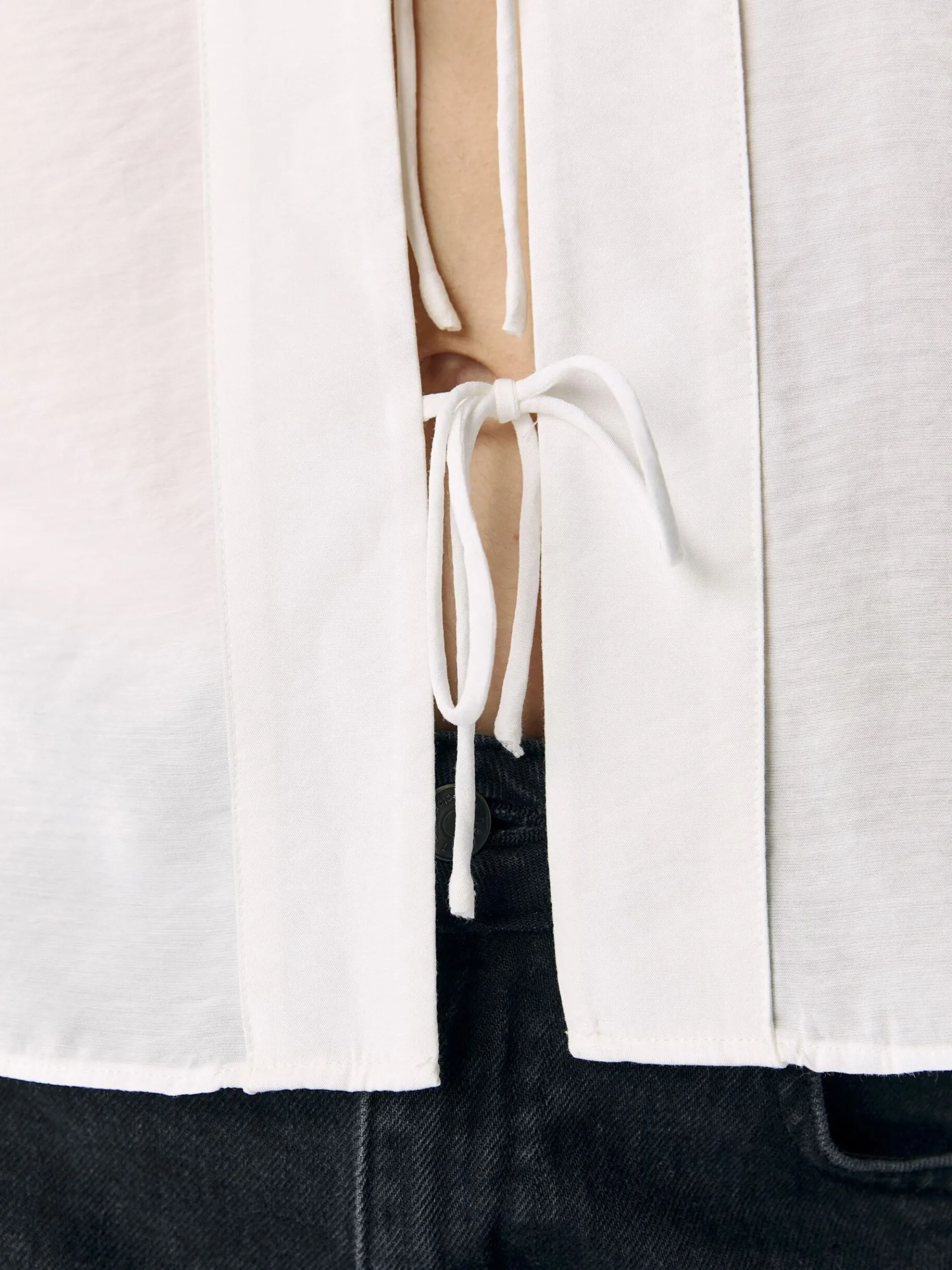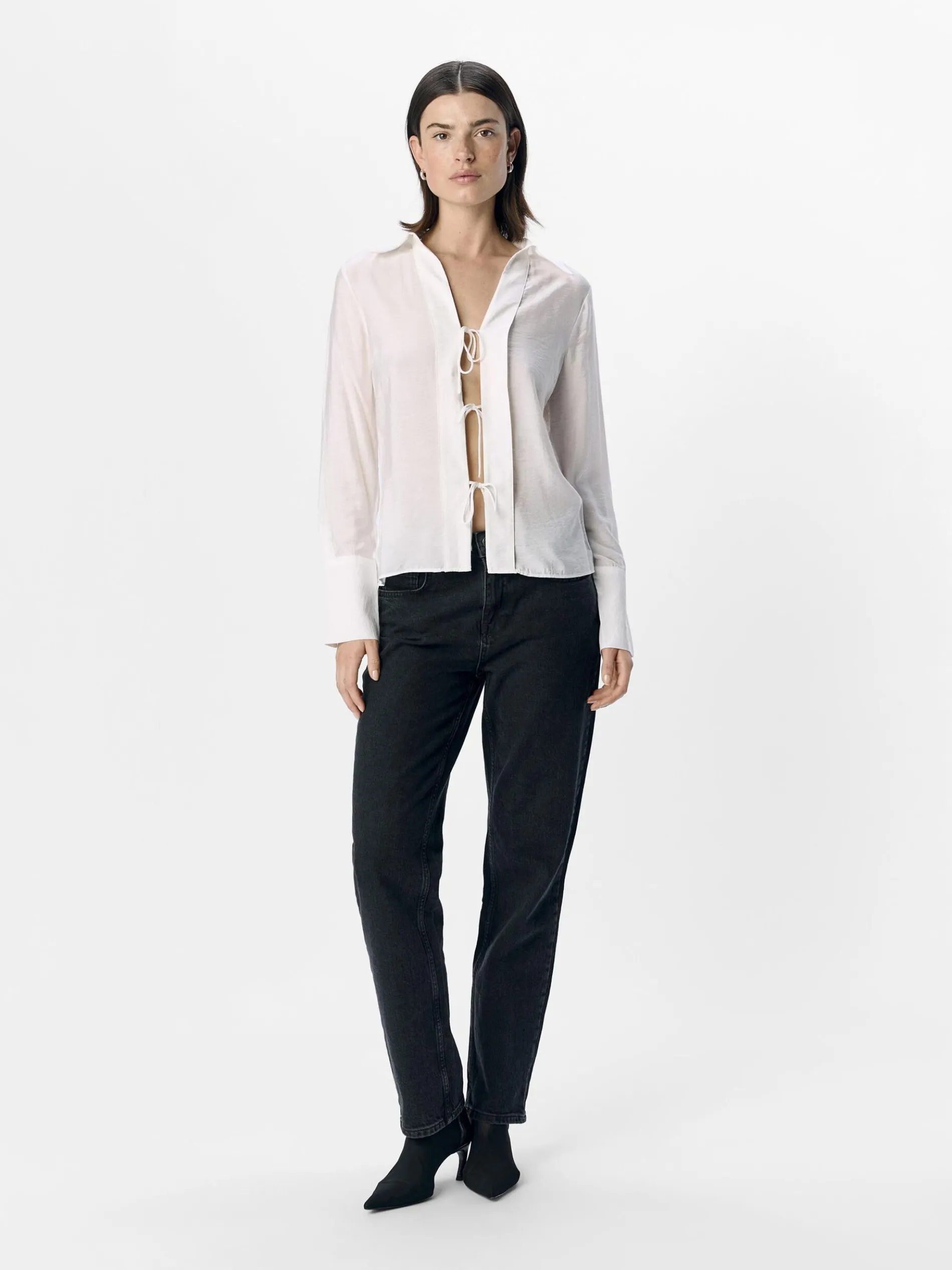 – Blouse met striksluiting aan de voorkant- Oversized gespreide kraag- Lange mouwen- Oversized manchetten- Regular fit